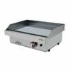Modelo 80PGR. Plancha a gas de acero rectificado, placa 15mm de espesor; 3 válvulas gas y 3 quemadores; 9,6Kw. Medidas: 81 x 45.7 x 24 cm.