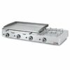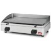 Plancha de cromo duro a gas, fabricada en acero inoxidable. Encimera de acero laminado de 15mm. Peto en acero inoxidable. Recogedor de grasas frontal. Quemadores de acero inoxidable. Encendido mediante piezzo eléctrico (uno por quemador). Grifos de gran calidad, uno por quemador. Placa de cromo de gran poder calorífico. Regulada por grifo termostático.