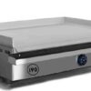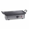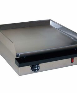Plancha diseñada en acero inoxidable. Placa de acero laminado de 6 mm de grosor. Con peto soldado perimetral de 36 mm para evitar salpicaduras. Tratamiento superficial antiadherente muy resistente. Recolector de aceite, extraíble para su limpieza. El calentamiento por resistencias blindadas. Temperatura regulable desde los 80 hasta los 300ºC. Patas regulables en altura.