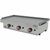 Plancha diseñada en acero inoxidable AISI 304 18/10. Encimera de acero de 6mm de grosor. Con peto soldado perimetral de 36mm para evitar salpicaduras. Recolector de aceite delantero, extraíble para su limpieza. Quemadores de gran poder calorífico. Modelos FOG: con fogón de gran poder calorífico de 6Kw. Válvulas termostáticas de seguridad con termopar. Encendido con piezoeléctrico. Panel frontal extraíble para facilitar su mantenimiento. Preparada a gas butano, incluye inyectores para gas natural. Toma de gas preparado a ambos lados. Patas regulables en altura.