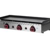 Placa de acero laminado de 6mm. Recolector delantero de fácil extracción para su limpieza. Encendido por piezoeléctrico. Válvulas de gas con termopar de seguridad. Resistencias blindadas de acero inoxidable. Termostatos con conmutador de encendido.