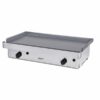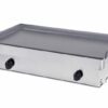 Plancha diseñada en acero inoxidable AISI 304 18/10. Encimera de acero de 6 mm de grosor. Con peto soldado perimetral de 36mm para evitar salpicaduras. Recolector de aceite delantero, extraíble para su limpieza. Quemadores de gran poder calorífico. Válvulas termostáticas de seguridad con termopar. Encendido con piezoeléctrico. Panel frontal extraíble para facilitar su mantenimiento. Preparada a gas butano, incluye inyectores para gas natural. Toma de gas preparado a ambos lados. Patas regulables en altura.
