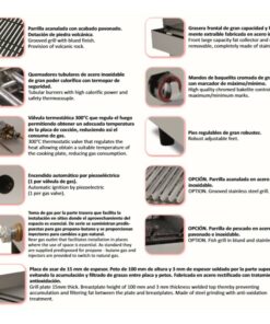 - Opcional parrilla acanalada en acero inoxidable/parrilla de pescado en acero pavonado e inoxidable.