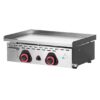 Placa de cromo duro de más de 60 micras y 12 mm de espesor. Recolector delantero de fácil extracción para su limpieza. Encendido por piezoeléctrico. Válvulas termostáticas. Resistencias blindadas de acero inoxidable. Termostatos con conmutador de encendido.