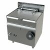 Sartén basculante con estructura construida en acero inoxidable. Paneles laterales y traseros, paneles de mandos y chimeneas fabricados en acero inoxidable AISI-304 18/10 para permitir una mayor durabilidad, robustez, fiabilidad y fácil limpieza. Cuba de acero inoxidable AISI-304 con fondo en acero inoxidable o acero suave según modelo. Disponible de grifo en el plano de trabajo para el llenado de la cuba. Patas de acero inoxidable regulables en altura, fácilmente sustituibles por ruedas. Equipado con un quemador tubular de alto rendimiento fabricado en acero inoxidable, válvula de seguridad y piloto. Válvula termostática para regulación de temperatura entre 100 y 290ºC. Sistema de encendido por piezoeléctrico. Mecanismo de inclinación de cuba tipo manual. De serie se suministran predispuestas para gas propano-butano y se proporcionan inyectores para cambios a gas natural.
