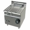 Sartén basculante con estructura construida en acero inoxidable. Paneles laterales y traseros, paneles de mandos y chimeneas fabricados en acero inoxidable AISI-304 18/10 para permitir una mayor durabilidad, robustez, fiabilidad y fácil limpieza. Cuba de acero inoxidable AISI-304 con fondo en acero inoxidable o acero suave según modelo. Disponible de grifo en el plano de trabajo para el llenado de la cuba. Patas de acero inoxidable regulables en altura, fácilmente sustituibles por ruedas. Equipado con un quemador tubular de alto rendimiento fabricado en acero inoxidable, válvula de seguridad y piloto. Válvula termostática para regulación de temperatura entre 100 y 290ºC. Sistema de encendido por piezoeléctrico. Mecanismo de inclinación de cuba tipo manual. De serie se suministran predispuestas para gas propano-butano y se proporcionan inyectores para cambios a gas natural.