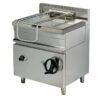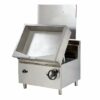 Sartén basculante con estructura construida en acero inoxidable. Paneles laterales y traseros, paneles de mandos y chimeneas fabricados en acero inoxidable para permitir una mayor durabilidad, robustez, fiabilidad y fácil limpieza. Cuba de acero inoxidable con fondo en acero inoxidable de 8 mm. Dispone de grifo en el plano de trabajo para el llenado de la cuba. Patas en acero inoxidable regulables en altura. Equipado con un quemador tubular de alto rendimiento fabricado en acero inoxidable resistente a choque térmico y mecánico, válvula de seguridad, llama piloto y termopar. Válvula termostática para regulación de temperatura entre 100 y 290 º C. Sistema de encendido por piezoeléctrico. Mecanismo de inclinación de la cuba tipo manual. Se suministran predispuestas para gas natural y se proporcionan inyectores para cambios a gas propano – butano.