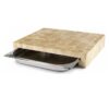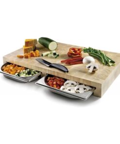 - Tabla de corte con cubeta de acero inoxidable oculta, completamente extraíble para recoger los alimentos cortados.