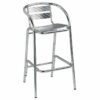 Taburete con armazón de tubo de aluminio anonizado. Asiento y respaldo con 5 costillas de aluminio anonizado.