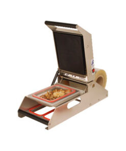 Termoselladora eléctrica para el envasado de alimentos en barquetas y sellado mediante soldadura de film a la barqueta por calor.