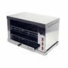 Modelo TP-20. Tostador industrial de introducción horizontal doble, para productos con altura máxima de 50mm. Fabricada en acero inoxidable. Resistencias de cuarzo. Interruptores independientes. Temporizador 0-15 min. 2,8Kw. Medidas: 50 x 28 x 39 cm.