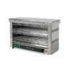 Tostador diseñado en acero inoxidable AISI 304 (18/10). Permite tostar, gratinar o calentar. Resistencia blindada en acero inoxidable y funcionamiento independiente. Parrillas en acero inoxidable con asa extensibles. Rejillas de protección desmontables para su limpieza. Profundidad interior de 27cm. Interruptor luminoso independiente por cada resistencia. Temporizador manual hasta 15 minutos. Bandeja recoge residuos extraíble. Patas antideslizantes.