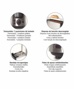 Regulador ajustable de tueste, elige entre 7 niveles para tostar a tu gusto.