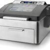 - Cajón portamonedas 410×410 mm de color negro con apertura automática. Tiene 2 separaciones para monedas y billetes (4 billetes y 8 monedas). La gaveta es extraíble con pisa billetes.