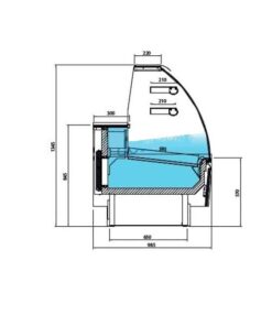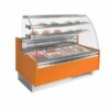 Vitrina expositora con reserva para pastelería, cristal curvo, de 1,2m y 2 puertas.