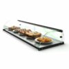 Expositor neutro de gran calidad y de moderno diseño. Bajo una base de acero blindado dispone de cristales templados que permiten una visión panorámica del interior del expositor.