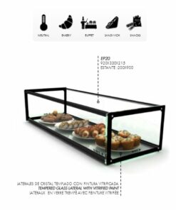 Expositor neutro de gran calidad y de moderno diseño. Bajo una base de acero blindado dispone de cristales templados que permiten una visión panorámica del interior del expositor.