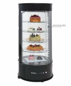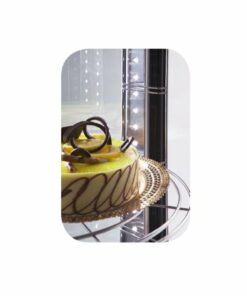 Vitrina de sofisticado diseño vertical y circular que proporciona una visión 360º del producto para la exposición de cualquier alimento.
