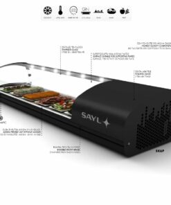Vitrina provista de detalles que marcan una gran diferencia respecto al resto de vitrinas de tapas convencionales.